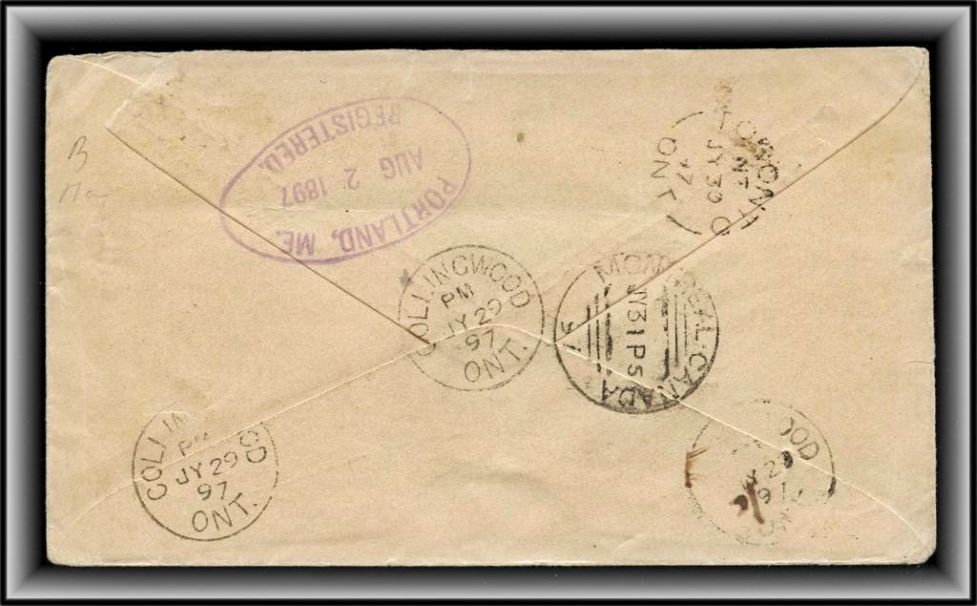 364 S o/CVR 36i + 51 TORONTO AU 27/1897 FLAG canc. B/S Yarmouth N.S. VF