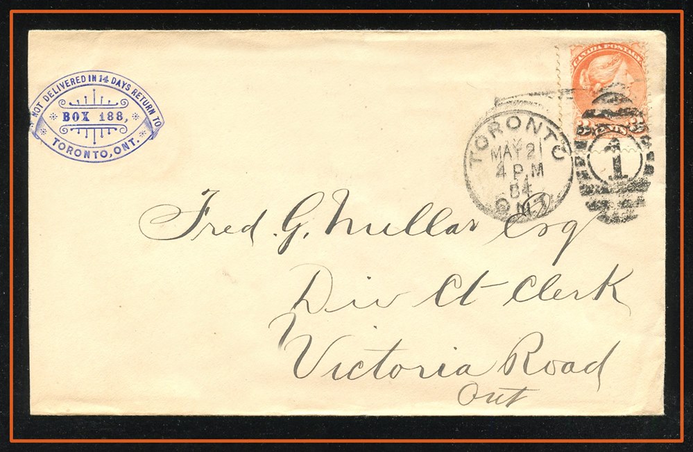 451 S oCVR 15 tied Diamond grid, TORONTO UC MY 3 60, small A2 spl.cir.. B/S faint PORT HOPE