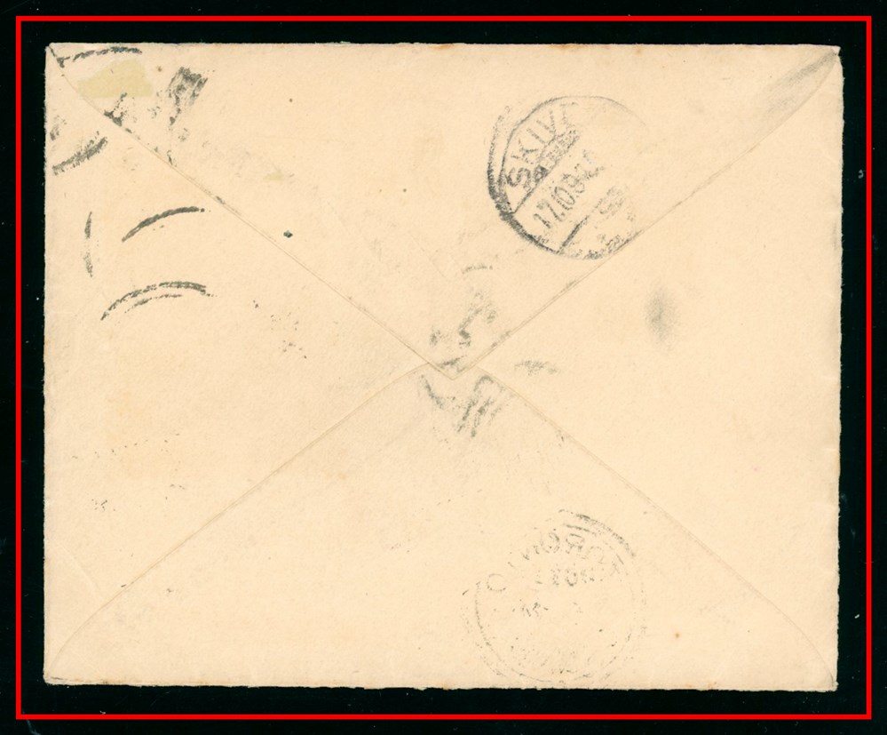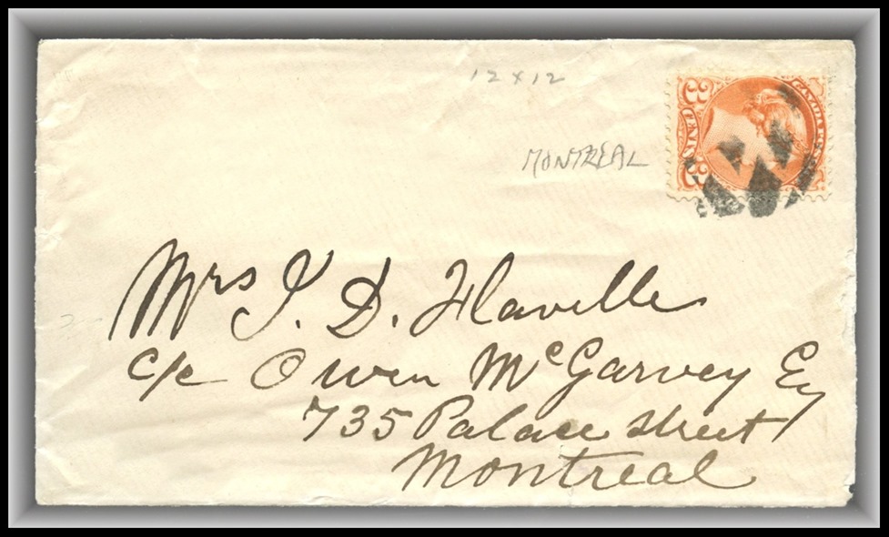 circle plus a #21 4-ring cancel (2 strikes) to Mrs L.J.A. Papineau (wife of the