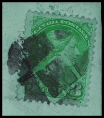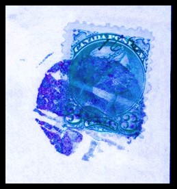 Montreal PQ roller, stamp (a pulled perf upon application) has THE MAOR RE-ENTRY