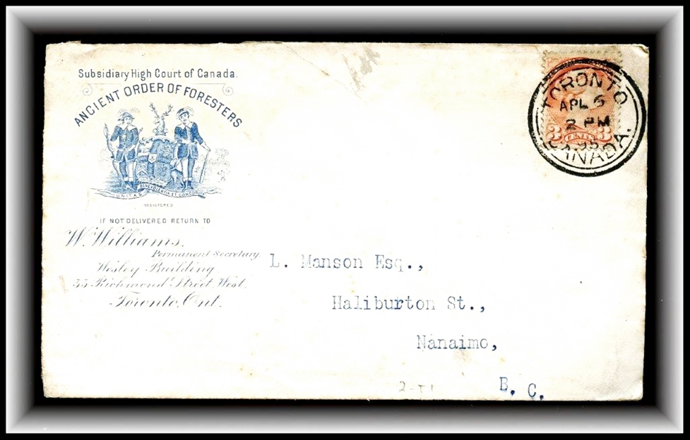 588 C o/CVR 41 ANCIENT ORDER OF FORESTERS advert. in light blue, TORONTO AP6/2PM/95, B/S