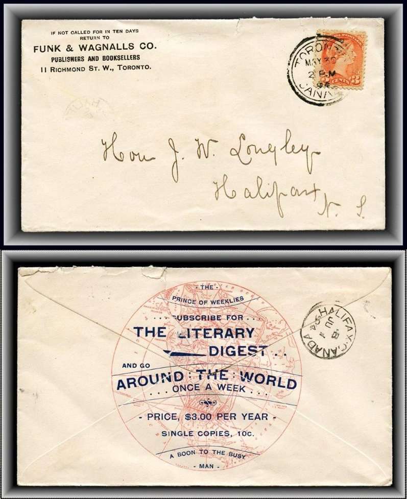 2PM/94 on backside advert (tear) Literary Digest. F-VF