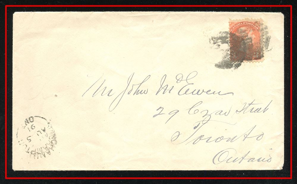 458 P o/CVR 35 FANCY CROSS(Lacelle 1071 ? Huntsville) on unsealed cvr to Niagara. VF