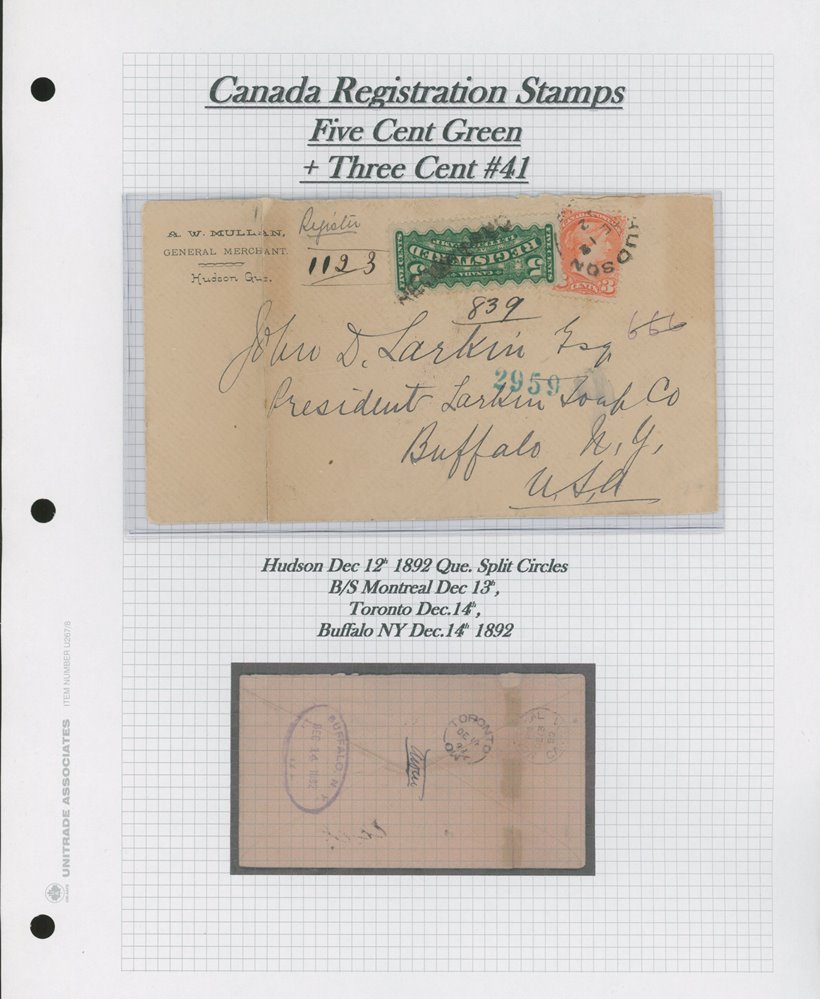 606 S o/CVR 41 + F2 A.W.Mullan crn card(repaired) HUDSON DE 12/92 QUE Spl.cir, B/S Montreal,
