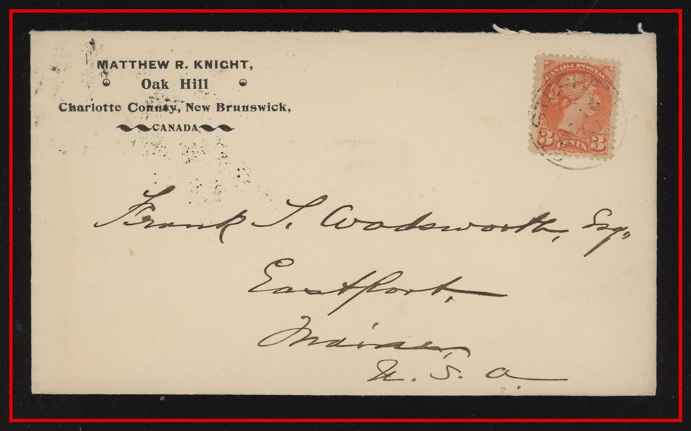 608 P o/CVR 41 Matthew R.Knight Oak Hill,STEPHEN OC 16 1897 N.B,B/S Calais Me,Eastport Maine