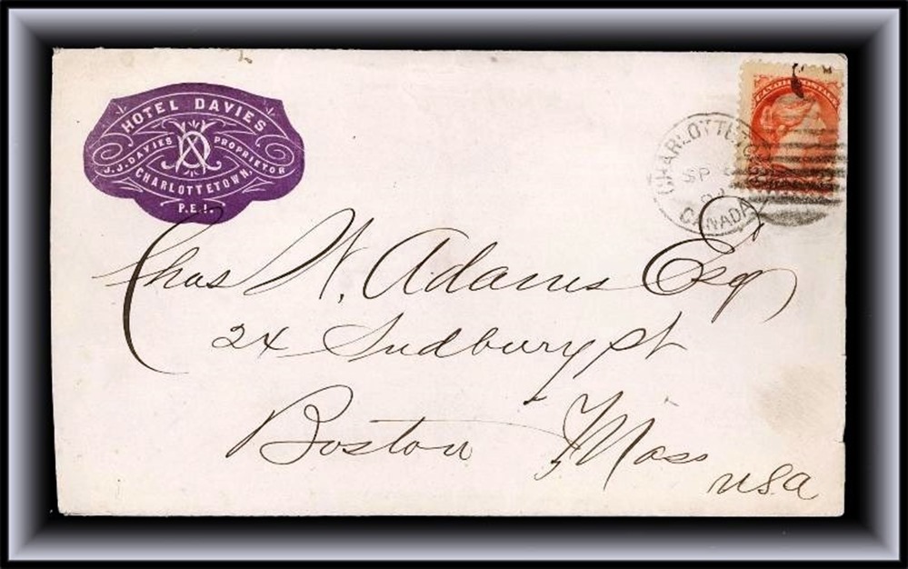 611 P o/CVR 41 HOTEL DAVIES J.DAVIES PROP CHARLOTTETOWN ADVERT in Purple Charlottetown