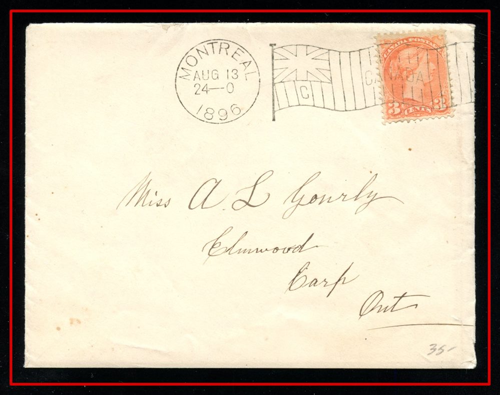 615 S o/CVR 41 MONTREAL AUG 13/24-01 1895 'C' Flag B/S Ottawa,Carp Ont + long letter unread