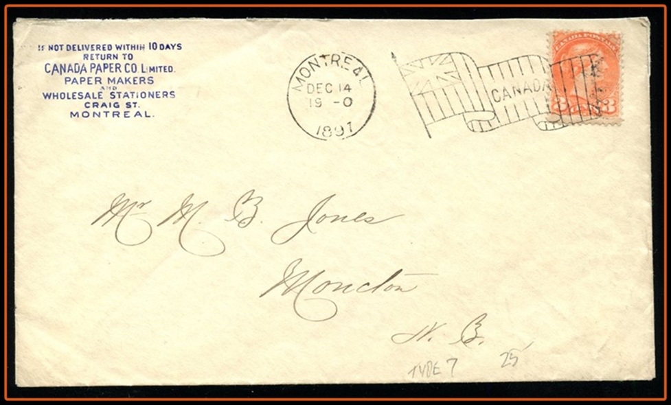 616 S o/CVR 41 CANADA PAPER CO PAPER MAKERS Advert Montreal Dec 14/1897 Flag B/S Moncton