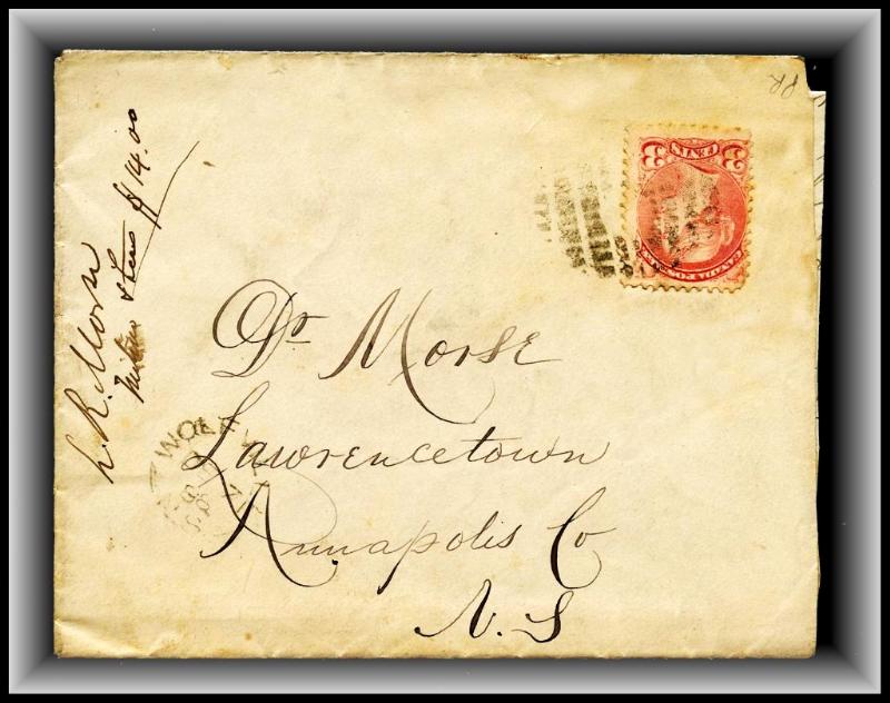 619 S o/CVR 41a Rose Carmine WOLFVILLE DE7/88 NS fancy cancel B/S Lawrencetown +letter.VF
