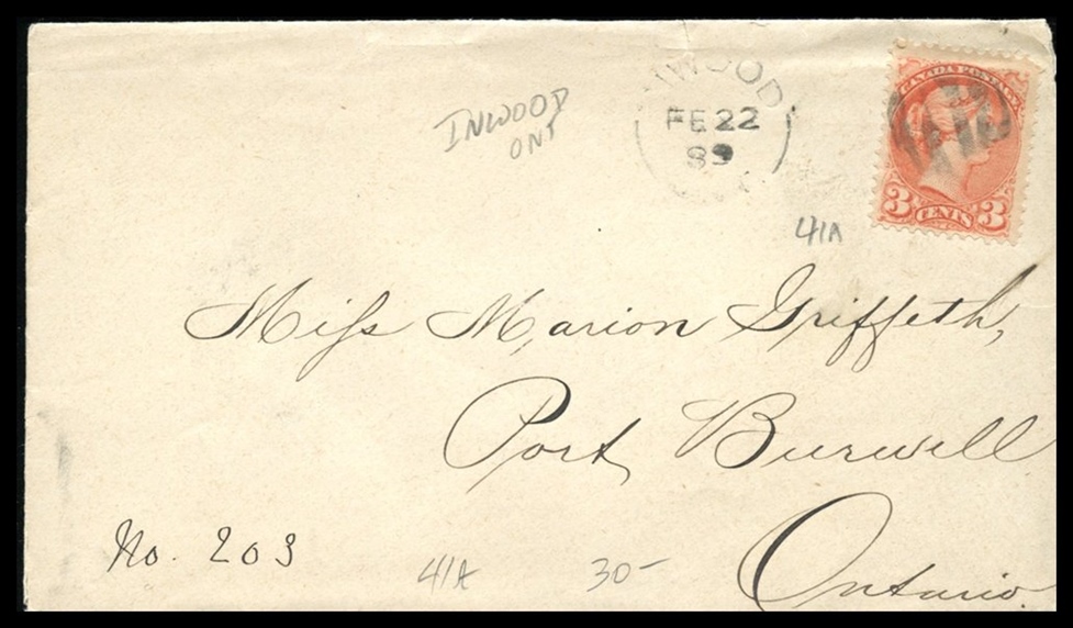 622 S o/CVR 41a Rose Carmine Inwood Fe 22/89 Ont Spl.cir + grid B/S Tilsonburg, Port Burwell