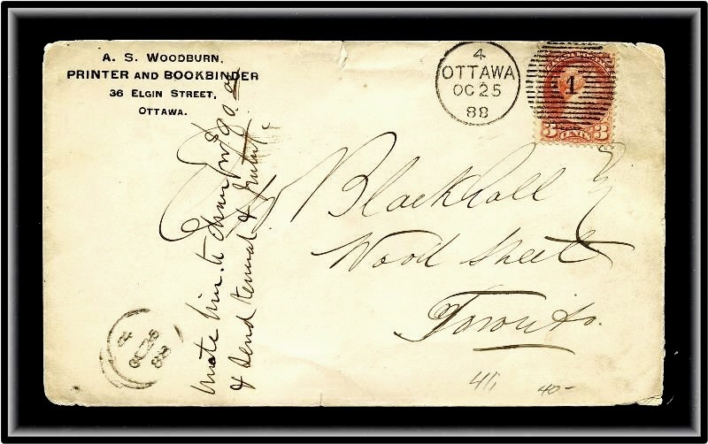 624 S o/CVR 41i A.S.WOODBURN PRINTER and BOOKBINDER Crn.Card,4 OTTAWA OC25/88 Duplex'1',B/S