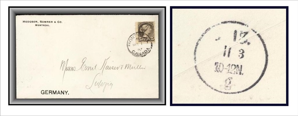 620 P o/CVR 41a MONTREAL 11/MR 2/AM duplex B/S Cleveland MR 5/1890. Nice later use. VF