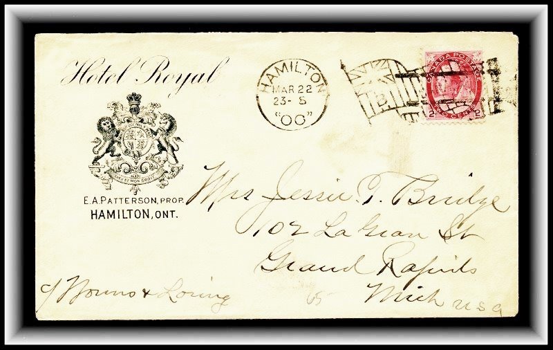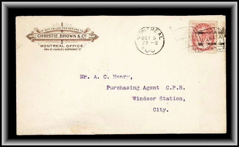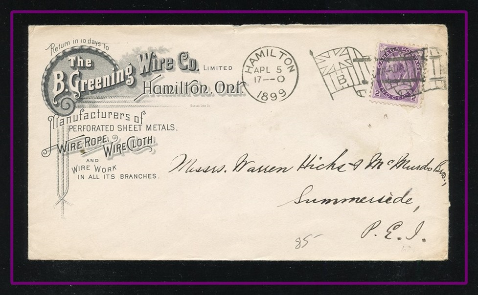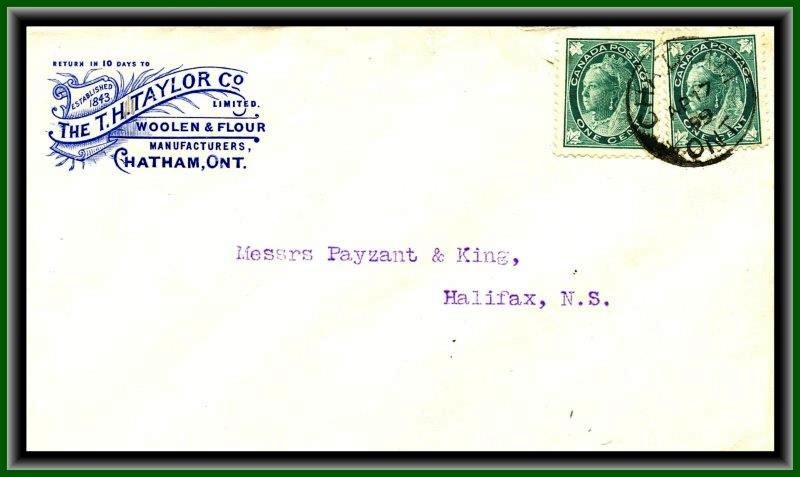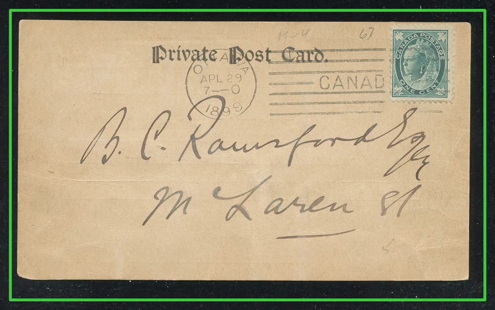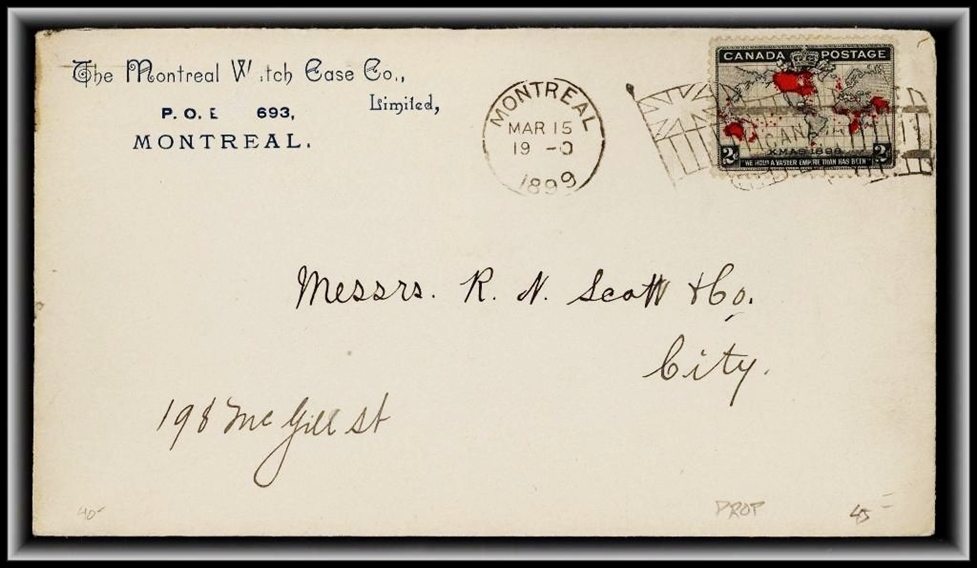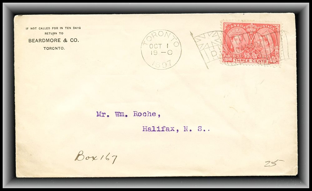 632 S o/CVR 53 BEARDMORE & CO CRN CARD TORONTO OCT 1/19-0/1897 Flag 'F', B/S Halifax. VF