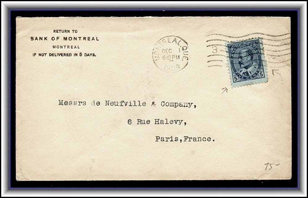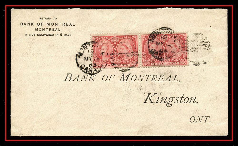 637 P o/CVR 53 Pair (6c double weight cvr) BANK OF MTL(Logo on flap), Montreal 19/MY 18/03