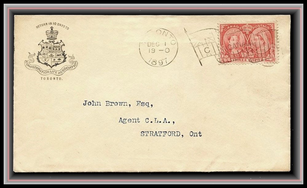 639 P o/CVR 53 CONFEDERATION LIFE ASSOCIATION TORONTO ADVERT CVR Toronto DEC 1/1897 Flag
