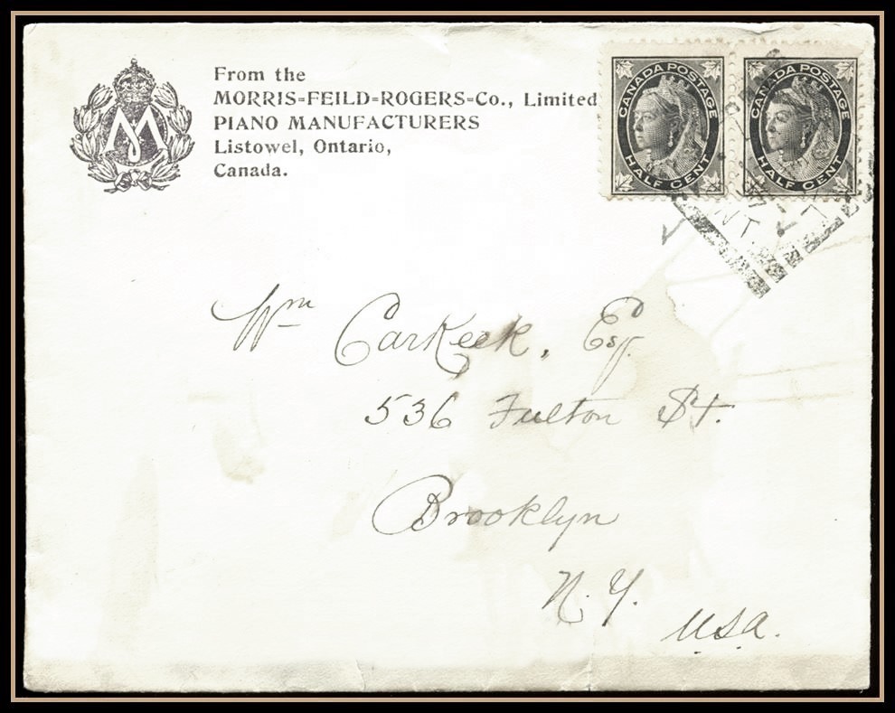 640 P o/CVR 66 Pair Morris-Field-Rogers Co.Piano Mfg Advert,LISTOWEL DE_/97 ONT SQ.Cir, B/S