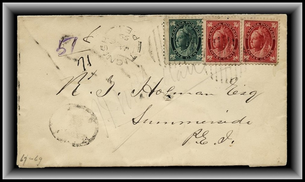 642 P o/CVR 67+69(2) R in cir. TIGNISH JA26/99 PEI spl.cir. B/S samex2, SUMMERSIDE JAN27/99