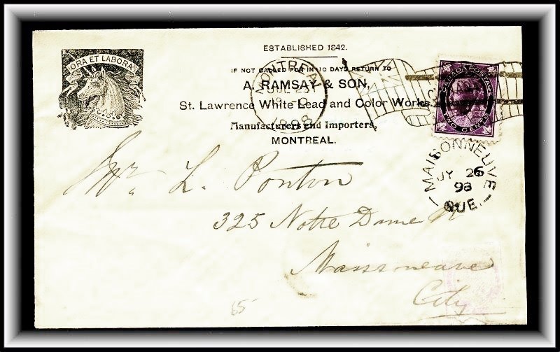 FLAG JULY25TH 1898, Maisonneuve Jy26/98 Que (street cancel) B/S same. VF-F