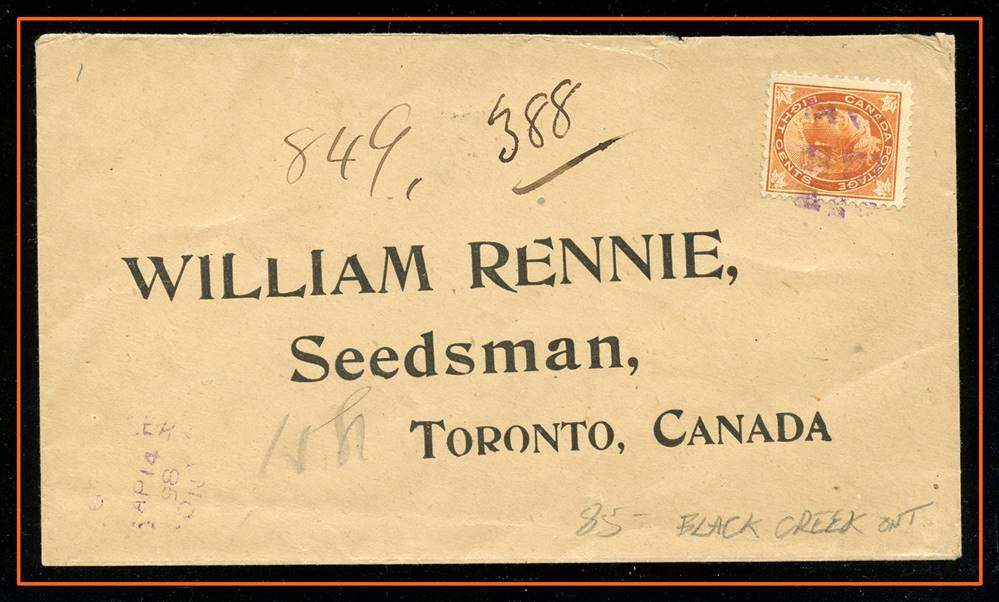 653 C o/CVR 72 Registered cvr Violet BLACK CREEK AP 14/98 ONT Spl cir + fancy grid B/S same