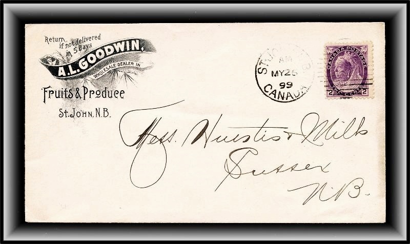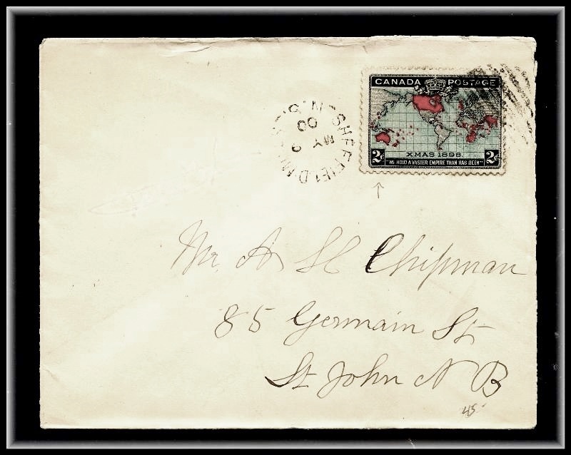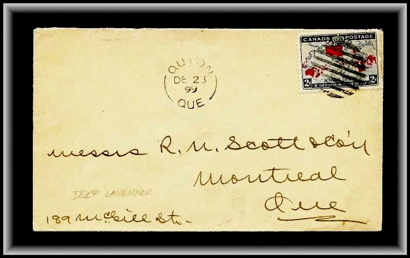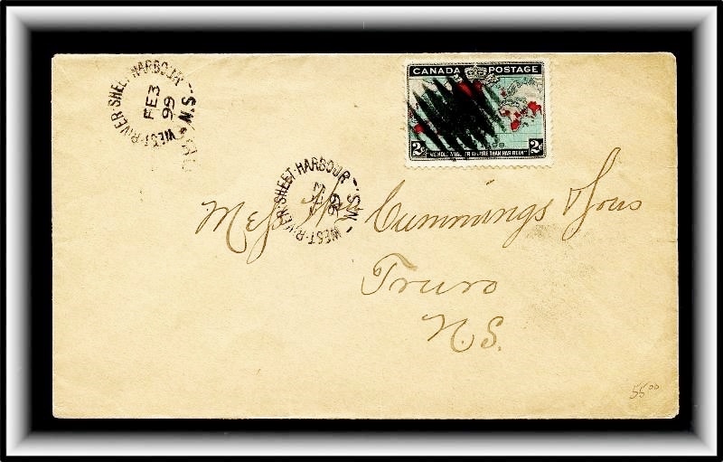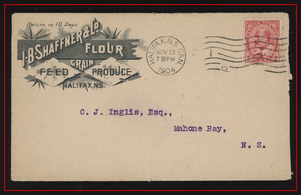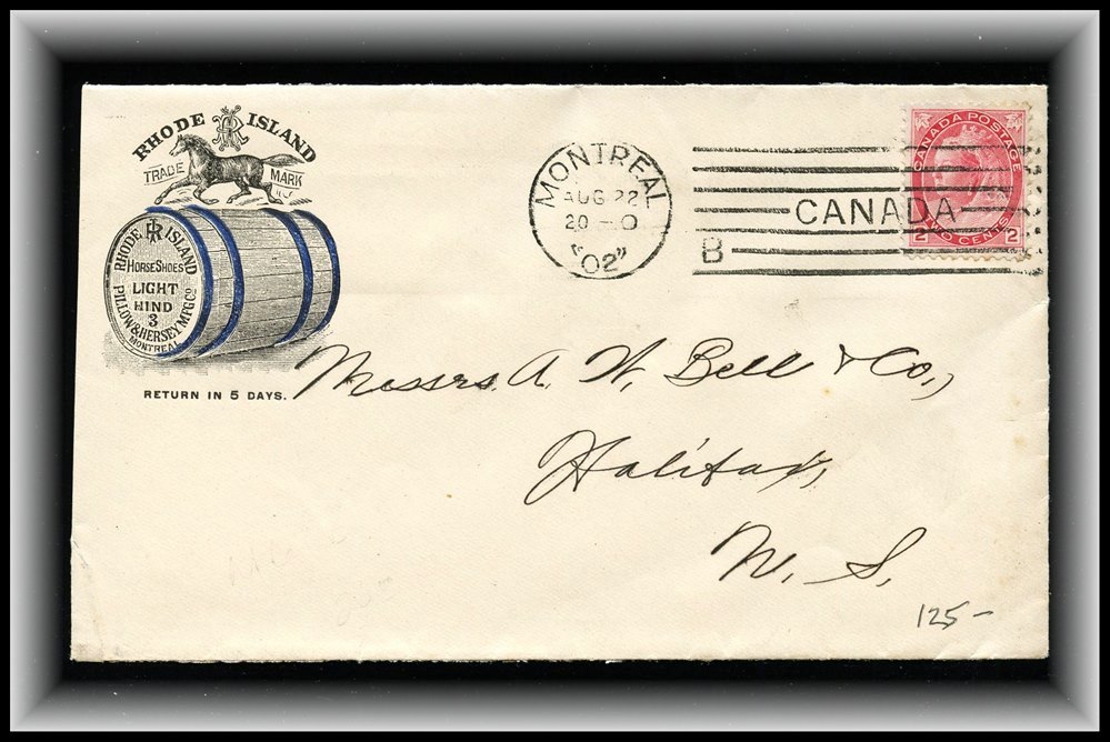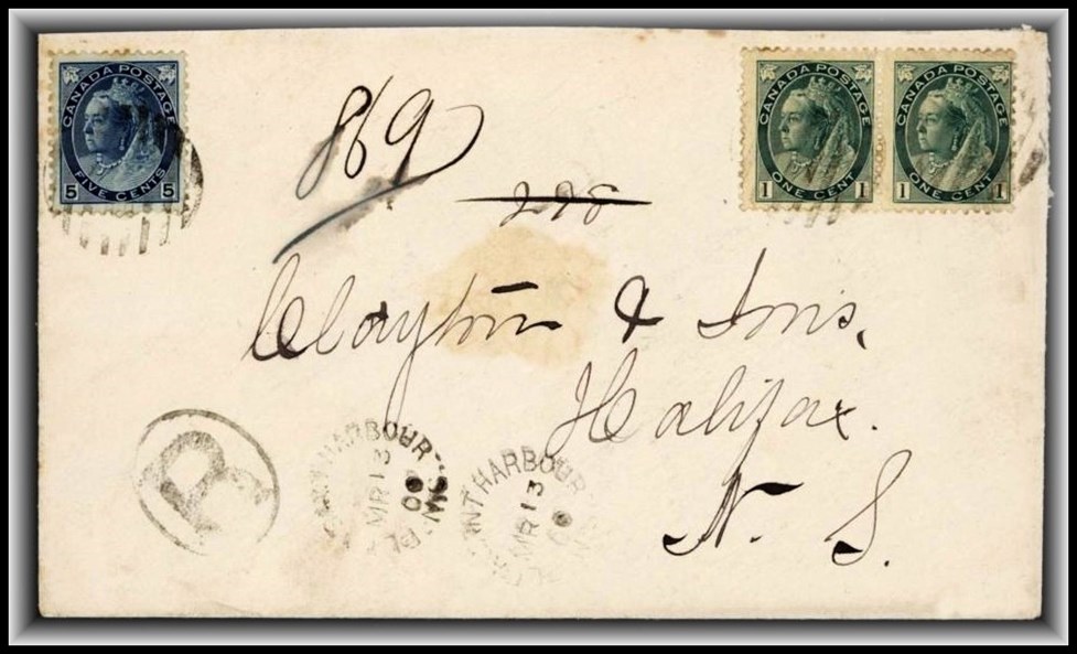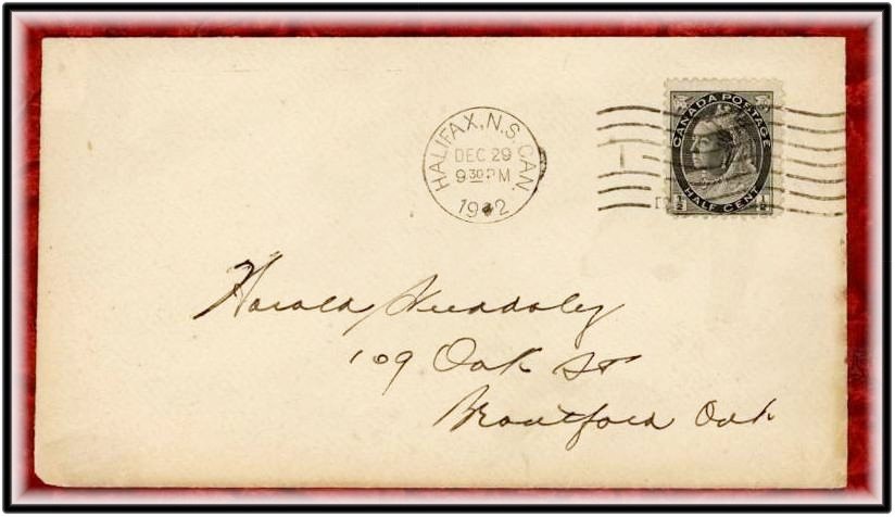 655 P o/CVR 74 HALIFAX NS CANADA DEC 29 9:30 PM 1902 on unsealed envelope to Brantford. Very
