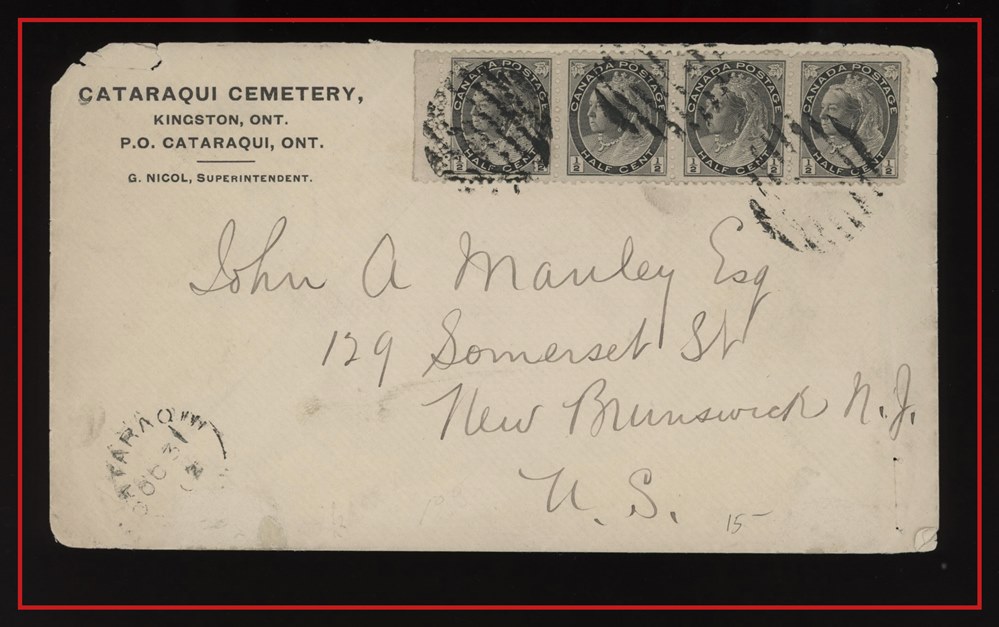 658 S o/CVR 74 Strip of 4 on CATARAQUI CEMETERY Advert,CATARAQUI OC 31/02 ONT Spl.cir to USA