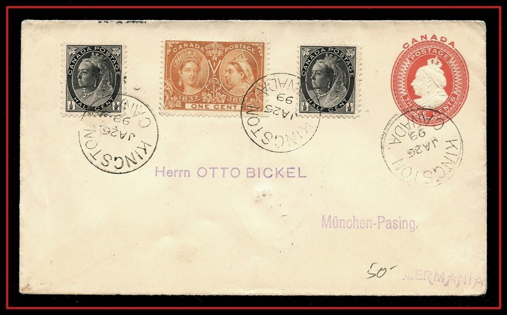 659 P o/PS 74(2) + 51 + THREE CENT POSTAL STAT, Kingston JA 26/99 Canada,B/S London England