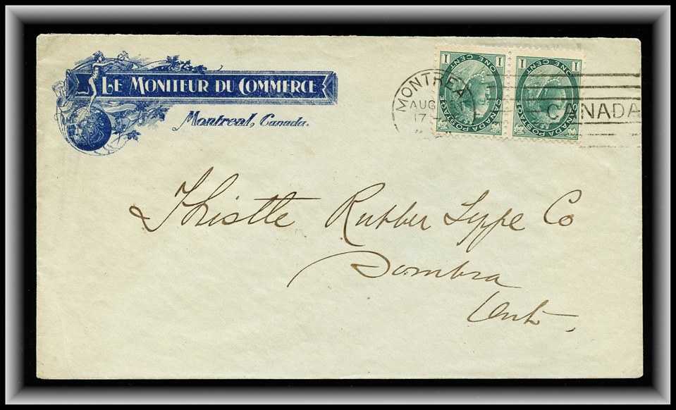 662 C o/CVR 75 pair on lovely 'LE MONITEUR DU COMMERNCE MONTREAL CANADA advert cvr,MONTREAL