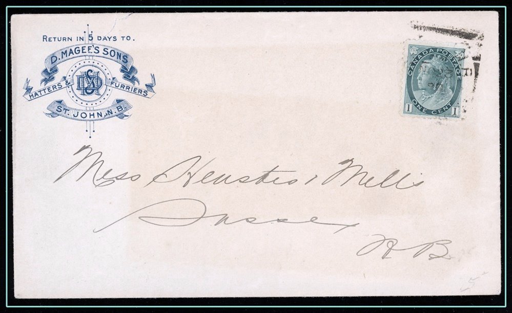 667 P o/CVR 75 Magee's Sons Hatters & Furriers St.John Advert in blue ST JOHN NO 23/98 N.B