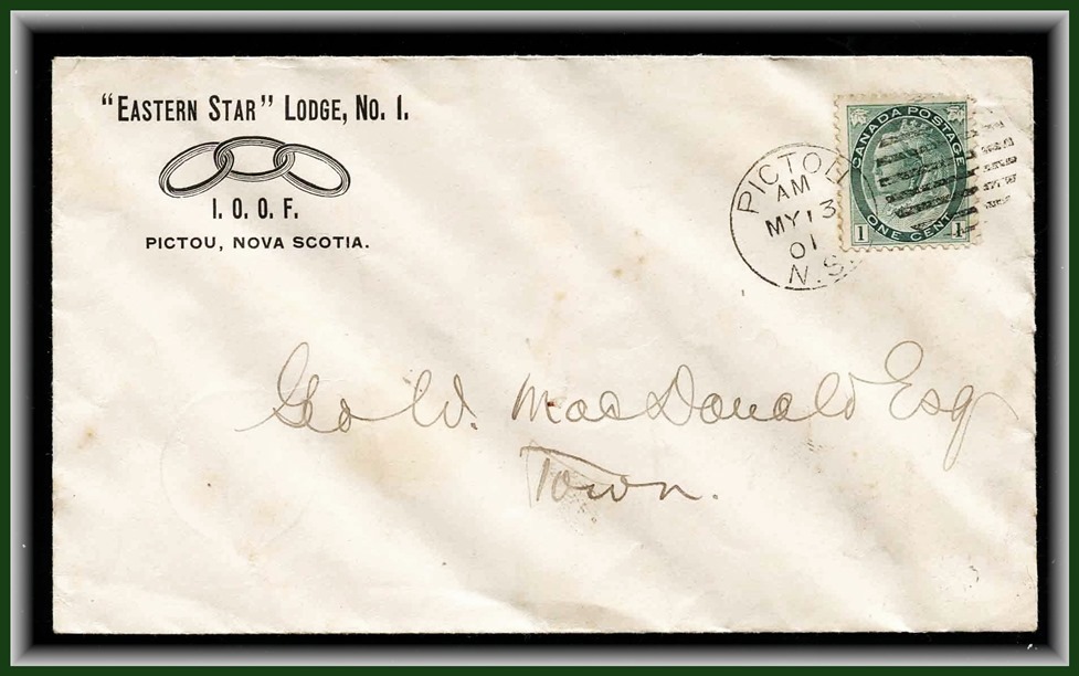 671 S o/CVR 75 EASTERN STAR LODGE NO.1 PICTOU N.S Advert Cvr, Pictou AM MY 13/01 N.S duplex.