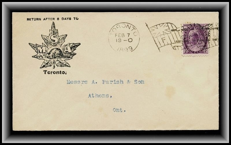 672 C o/CVR 76 Lovely Beaver/Maple Leaf 'MSA' or 'SMA' Advertising TORONTO FEB 7 1899