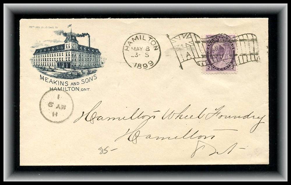 673 C o/CVR 76(Greyish shade) MEAKINS AND SONS HAMILTON advert. HAMILTON MAY8 1899 Flag Drop