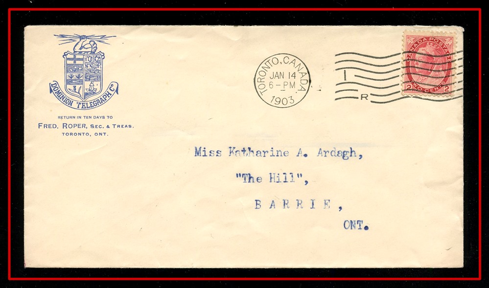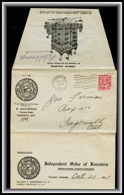 Toronto OC31/1911 to Ingersol. Super item. VF