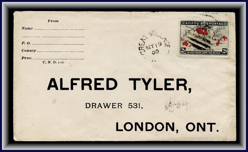 CANADA B/S Large Oval in Violet REGISTERED MY 5/27 BOTHWELL ONT, TORHAM + LON