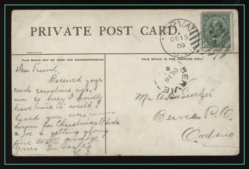 790 o/PC 104b MANCHESTER AP11/14 ONT split cir.drop PC. Pretty strike. VF SB 35.00