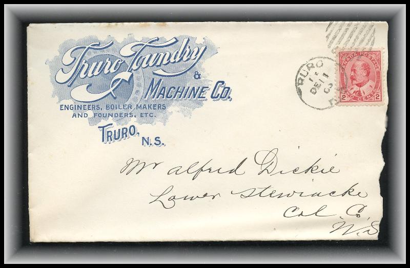 636 S o/CVR 53 Truro PM AU 31/97 NS SQ Cir on THE TORBROOK IRON CO CVR, B/S Westerfield,