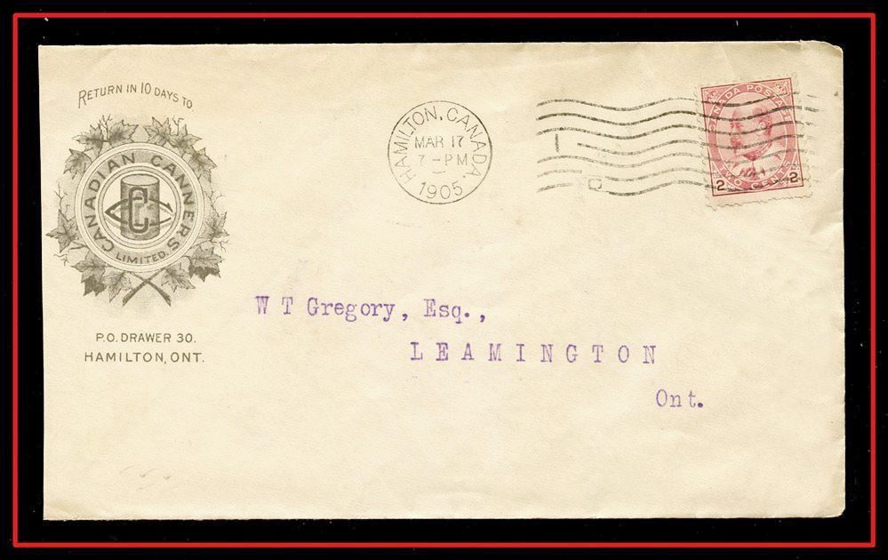 765 C o/CVR 90 CANADIAN CANNERS LTD ADVERTISING CVR,Hamilton MR 17/05,B/S Leamington Ont
