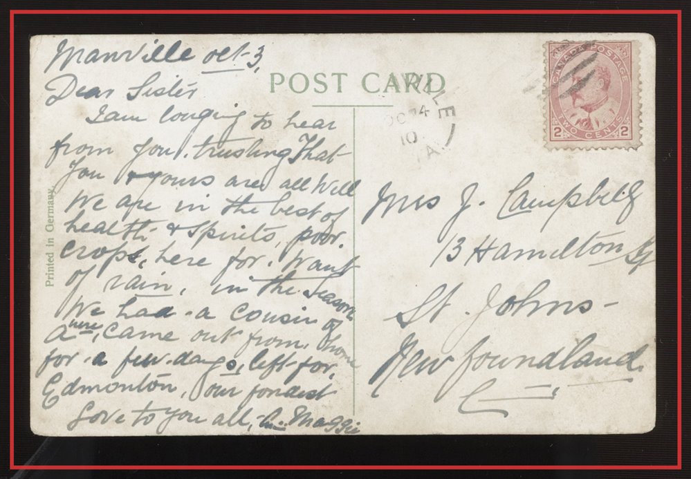 776 P o/PC 90bs MANVILLE OC 4/10 ALTA Spl.cir on NIAGARA FALLS PC to St Johns NEWFOUNDLAND