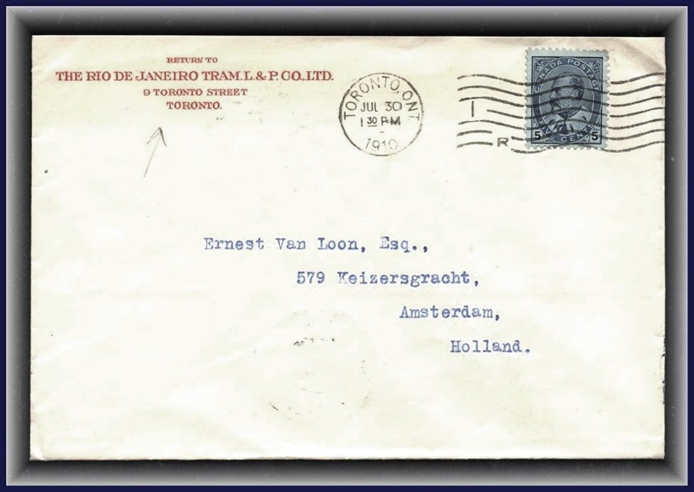 778 S oCVR HOLLAND - 91 on THE DE JANEIRO TRAM. L.&P.CO. LTD cover to Amsterdam, dated