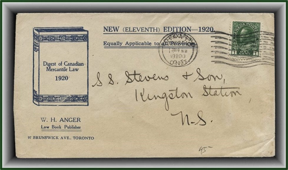 788 P o/CVR 104 W.ANGER LAW BOOK PUBLISHER, THE DIGEST OF CANADA MERCANTILE LAW 1920 Advert