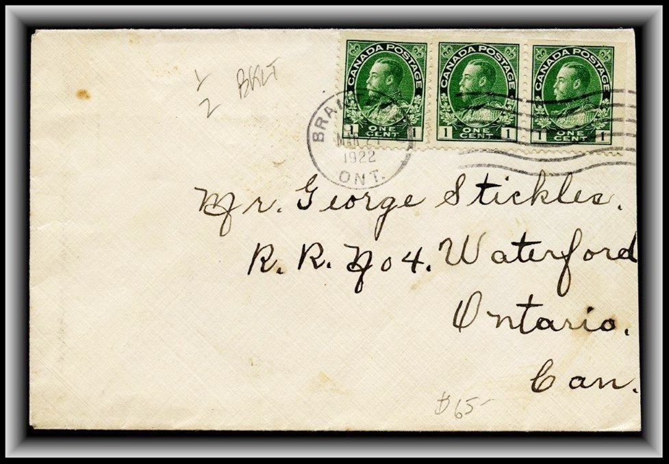 789 P o/CVR 104a (1/2 of Admiral One Cent booklet, top Half) BRANTFORD MR27/1922 ONT machine