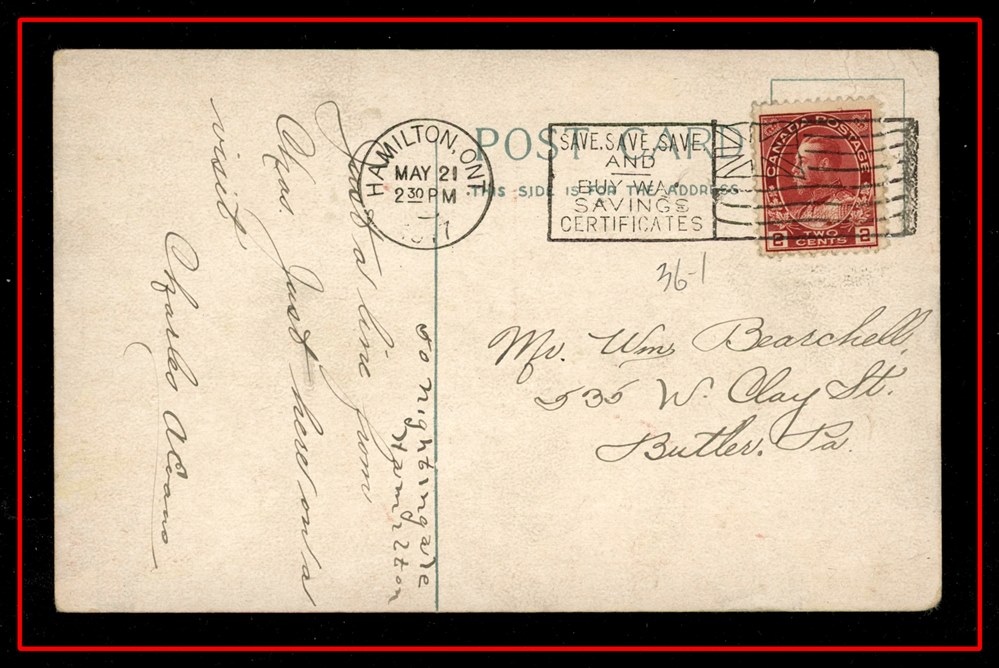 796 S o/PC 106 Hamilton Flag Type 36-1 "SAVE SAVE SAVE" MY 21/1917 on Connaught Hotel