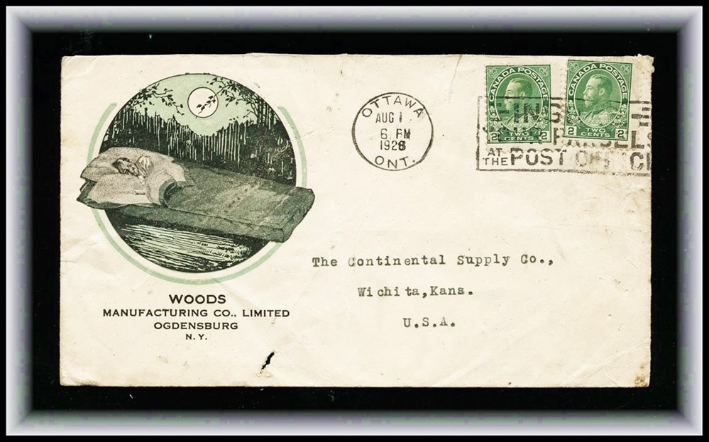 798 P o/CVR 107(2) OTTAWA AU 1/1928 ONT Slogan on Colour WOODS MANUFACTURING CO Advert to