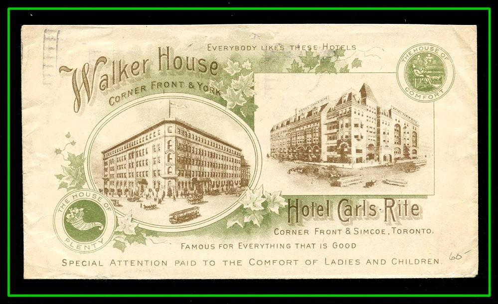 801 P o/CVR 108 lovely 2 sided advert WALKER HOUSE HOTEL Carls Rite Toronto Jul15/1923 CNE