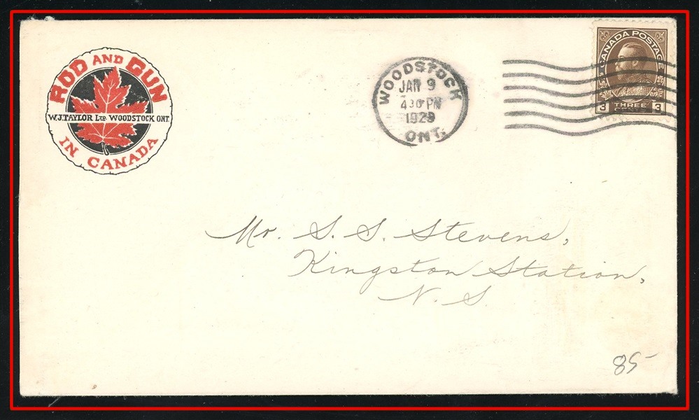 802 P o/CVR 108 ROD & GUN IN CANADA COLOUR ADVERT, Woodstock JA 9/29 Ont B/S Kingston Stn NS
