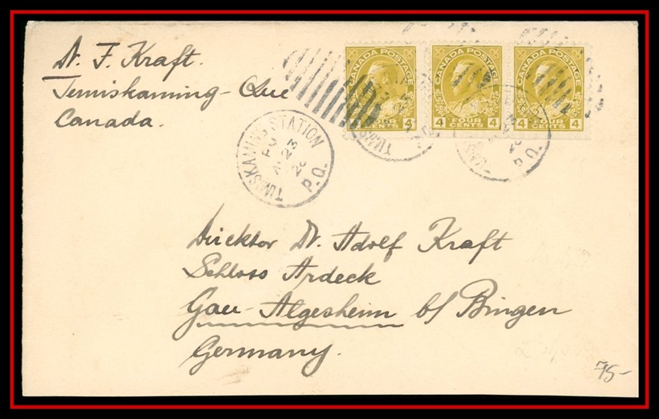 803 C o/CVR 110d(3)TIMISKAMING STATION PM AU 23/26 PQ duplex(3 strikes)to Director Dr.Adolf
