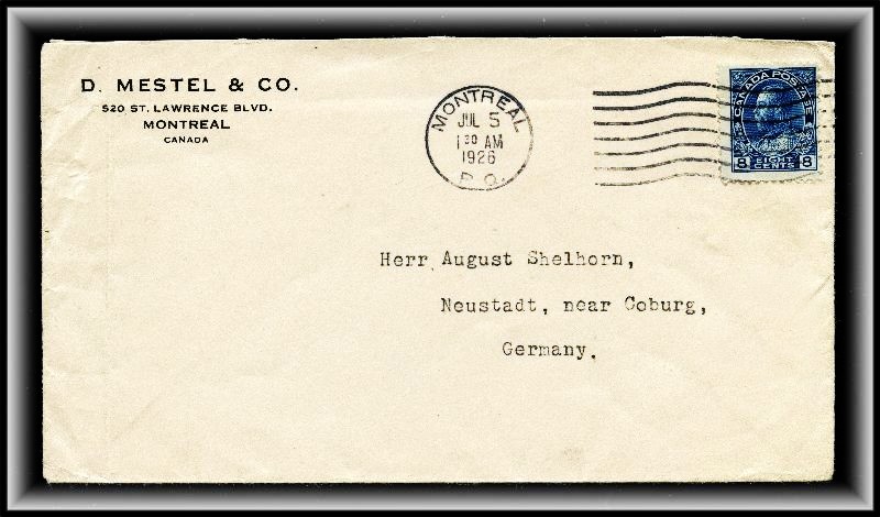 806 P o/CVR 115 MONTREAL JUL 5/130 AM 1926 PQ, to GERMANY. F-VF