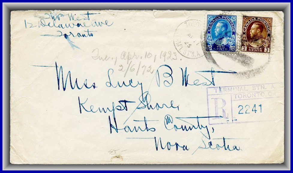 808 P o/CVR 117 + 108 Large R in circle,TORONTO STN A AP/11/23 + Long letter,B/S Same,R.P.O,
