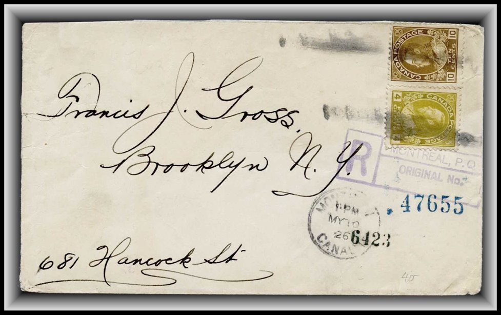 809 S o/CVR 118ii + 110 REGISTERED MONTREAL MY 10/26 CANADA, B/S Same,3 diff N.Y cancs. F