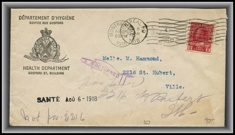 812 P o/CVR 127 excellent DEPT OF D'HYGIENE HEALTH DEPT advert MONTREAL AUG 8/1918 B/S