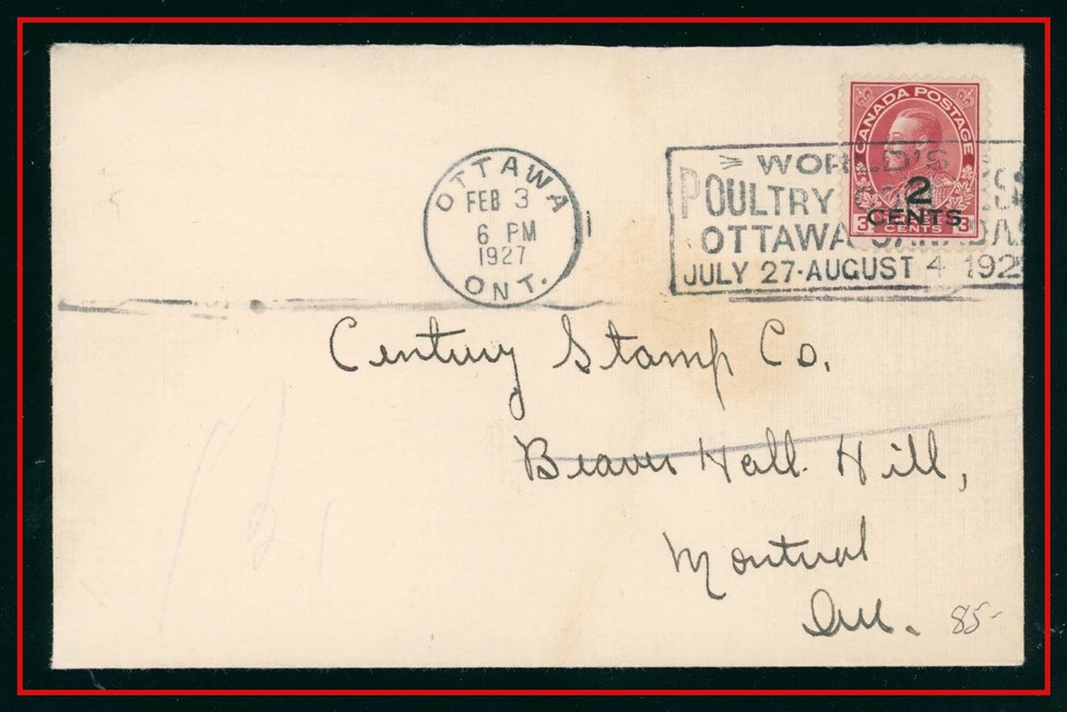 814 C o/CVR 140 OTTAWA FEB3/6PM 1927 ONT. 'World Poulty Congress Ottawa'slogan to MTL.VF